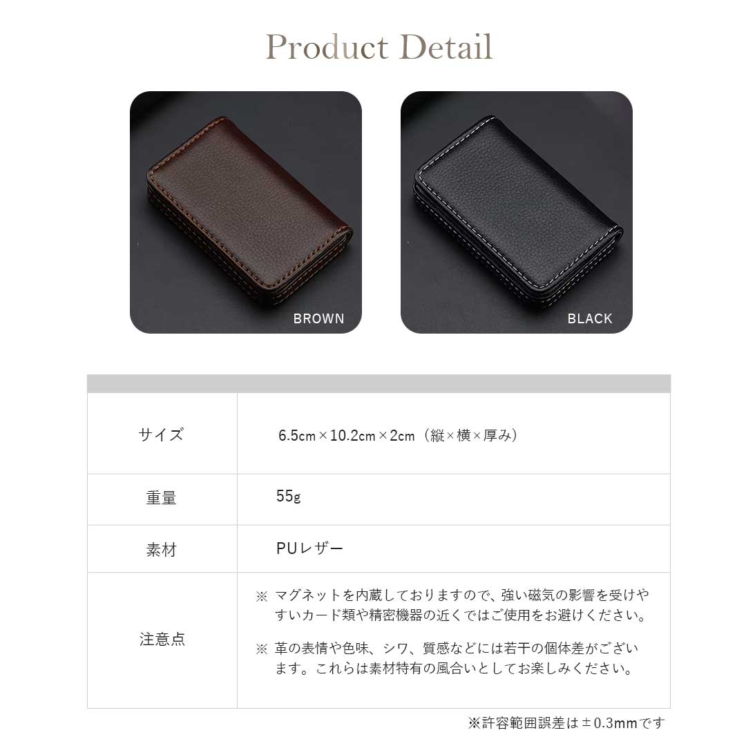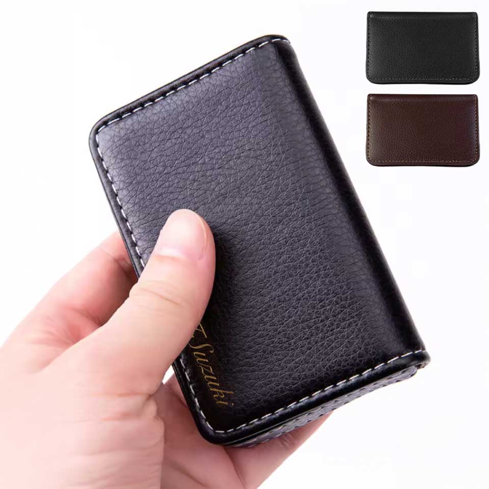 上品な革の質感が魅力的な名刺入れです。ブラウンとブラック2色をご用意。